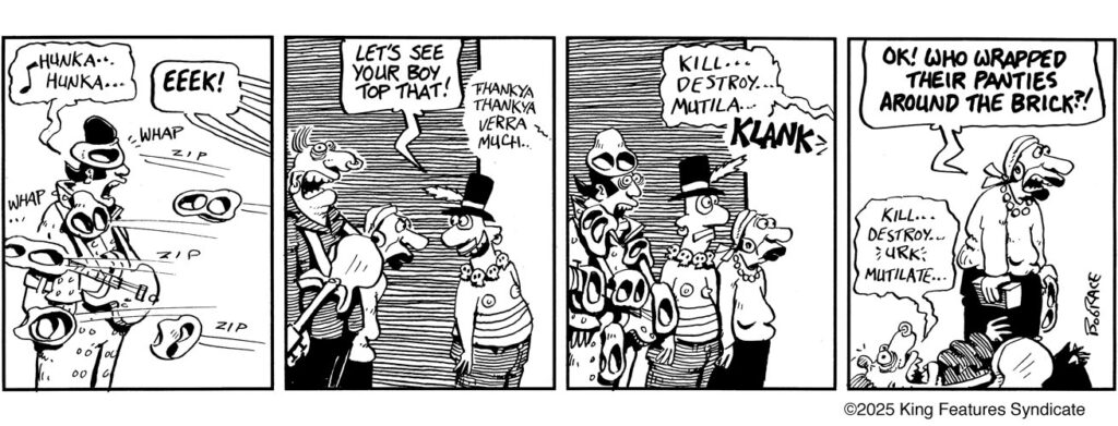 Guess what! I just got back from a month in Europe. Mark Twain said that when women get old they want to travel. Geeze! When men get old they just want to sit on their butts and drink beer. I’m sorry that I haven’t been able to respond to your comments and email. I bought foreign phone service for a month from Verizon. The only place it seemed to work was in Lisbon. So I was pretty much hors de combat the whole time. Not only that, I was sick mostly. Bronchitis. I’m still hacking up big stinking loogies. But here’s the good news! (Or bad news maybe) All this week I’ll be posting vacation pictures! If I have the energy. Which reminds me of a very naughty cartoon that I drew many years ago. It was about showing vacation slides to friends. It was so naughty I didn’t put in in my Suckling Pig book. You’ll just have to stretch y0ur imagination.