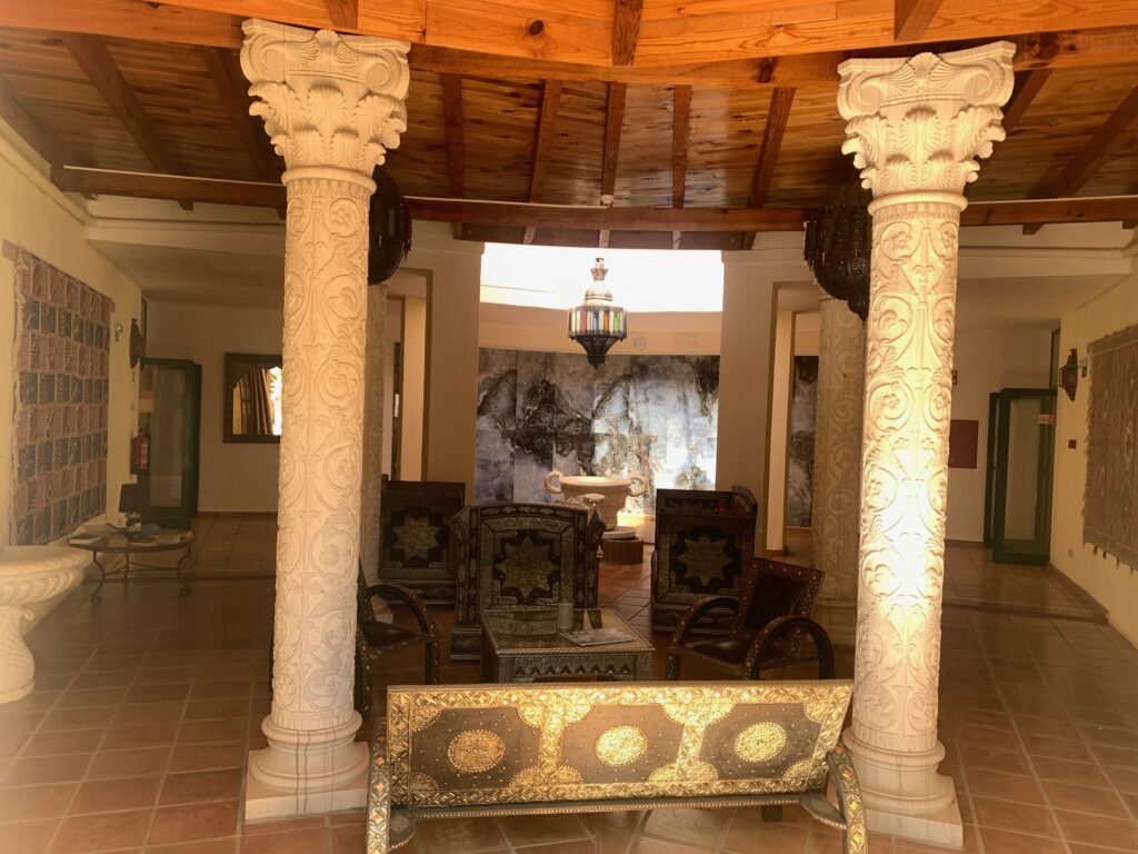 According to Angel the furniture is made of camel teeth. Lots of other stuff, sphinxes and stuff like that.