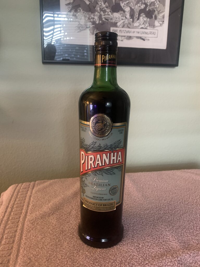 Cassidy wants to buy my vintage bottle of Piranha Liquor.